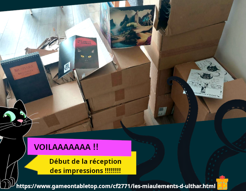 Bonne nouvelle ! Tous les livres , le bestiaire , les écrans et autres éléments sont enfin arrivés à bon port. Les colis vont commencer à partir d’ici quelques semaines